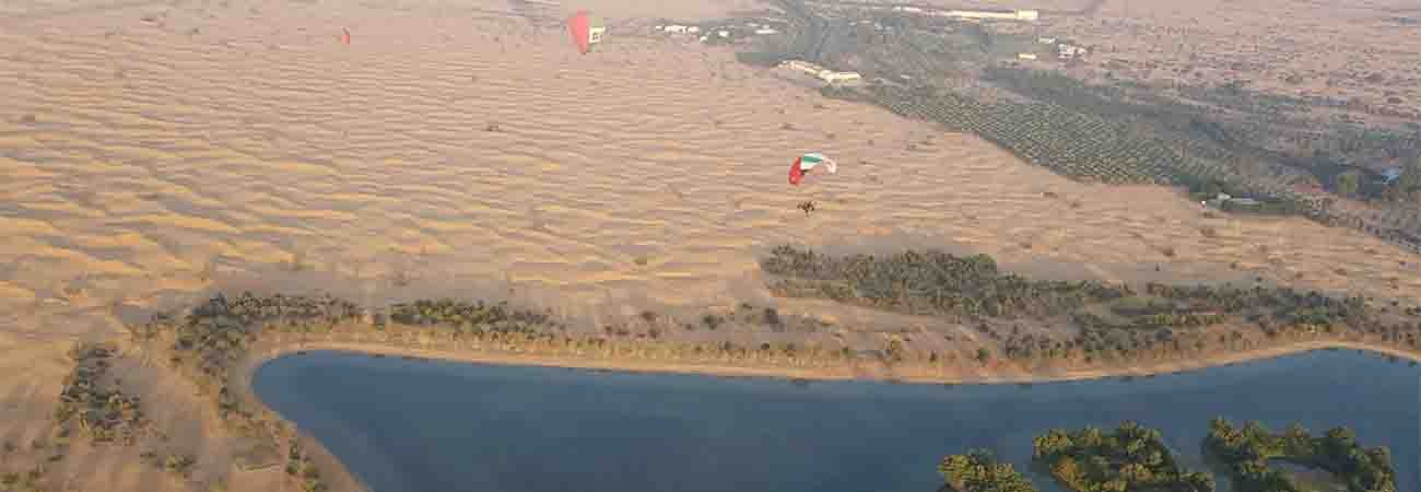 · Admire the unspoiled Dubai Desert Conservation Reserve or Dubai Lake as you get strapped into this exotic aircraft and soar up to 1,500 feet into the air with a microlight engine attached to a cage-like structure and enhanced by a paragliding wing.